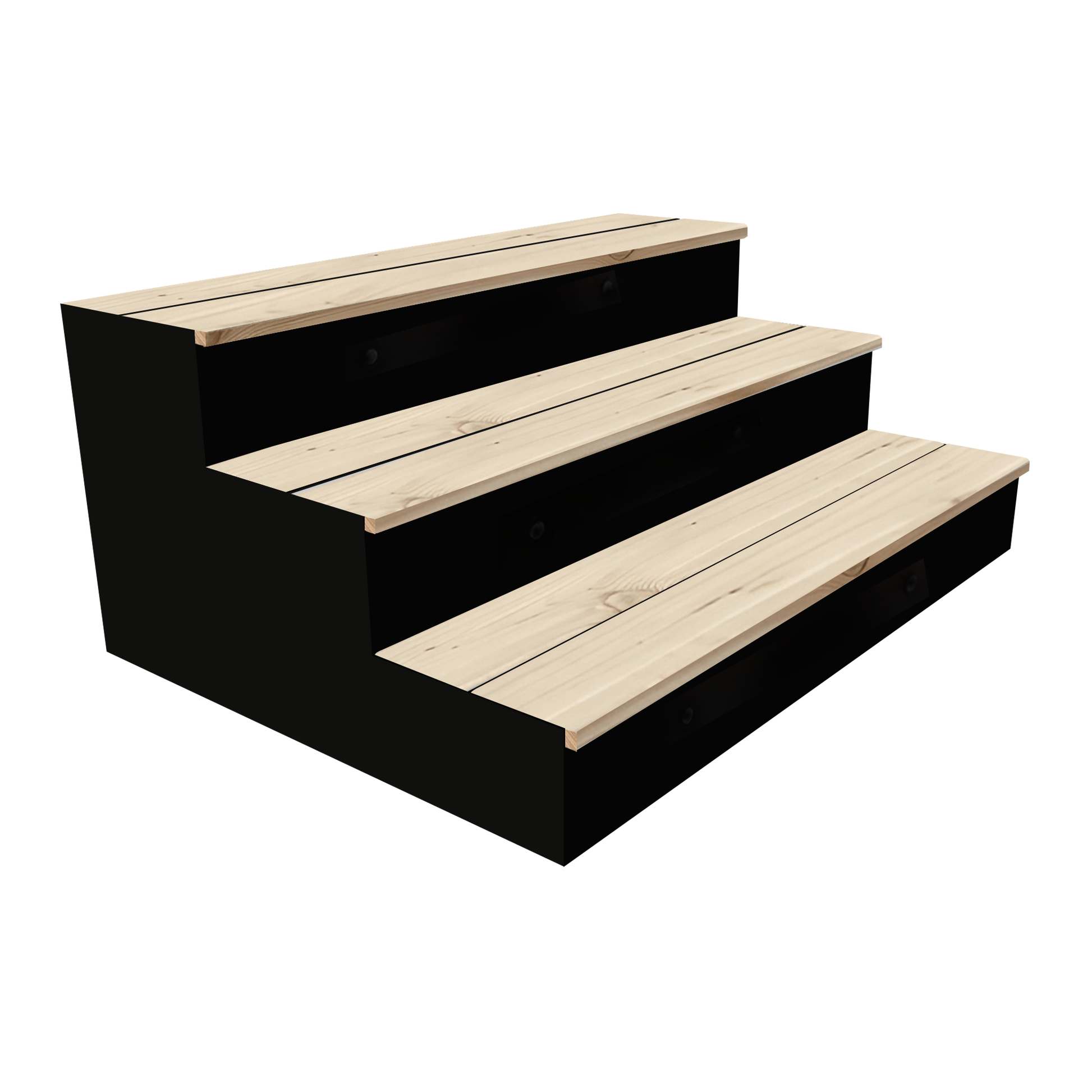 Built with a lightweight yet strong aluminum frame, finished in a sleek black powder coat, our steps provide stability and weather resistance in any environment. The no-tool assembly allows for quick and easy setup, making it simple to adjust or relocate as needed.